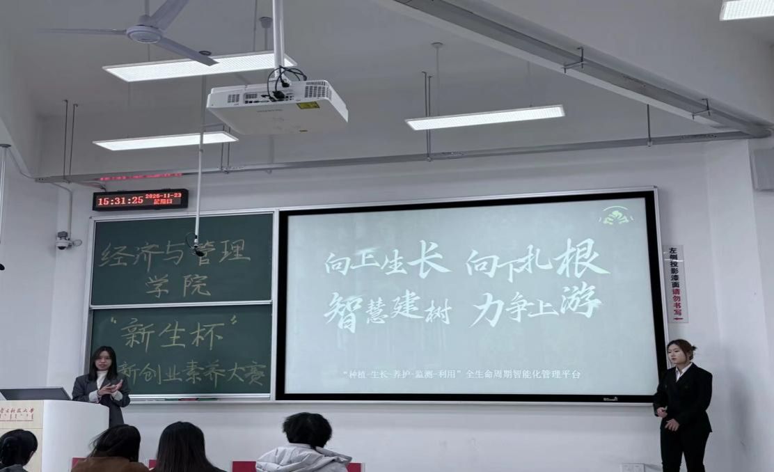 历经一个多月的精心筹备与严格选拔,大赛于11月中旬顺利完成通讯评审,共有18支优秀团队脱颖而出,成功晋级决赛。决赛现场,各团队通过路演展示与现场答辩,系统呈现了项目创意、商业模式及团队协作能力。同学们自信从容的陈述与逻辑清晰的应答,赢得了现场评委的一致肯定,展现出2025级经管学子扎实的综合素养与昂扬的青春风貌。