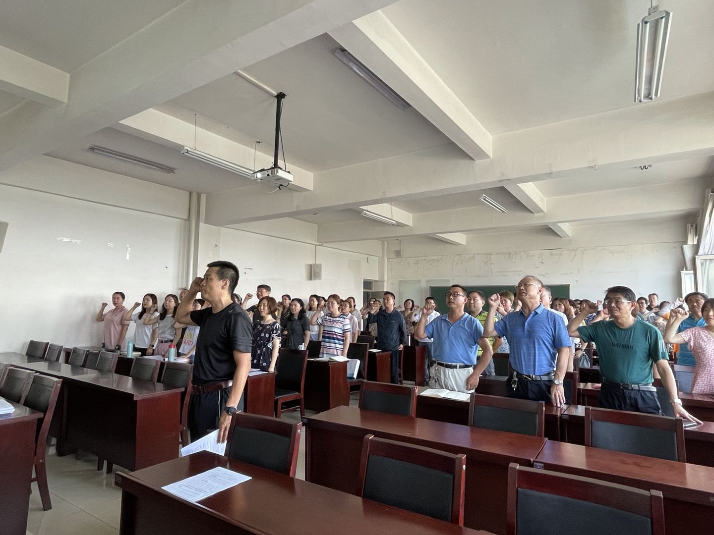 2021年7月16日上午,澳门十大信誉好的网站举办教师宣誓仪式,宣誓由党委书记王玉泉主持,学院全体教职工参加了宣誓仪式。