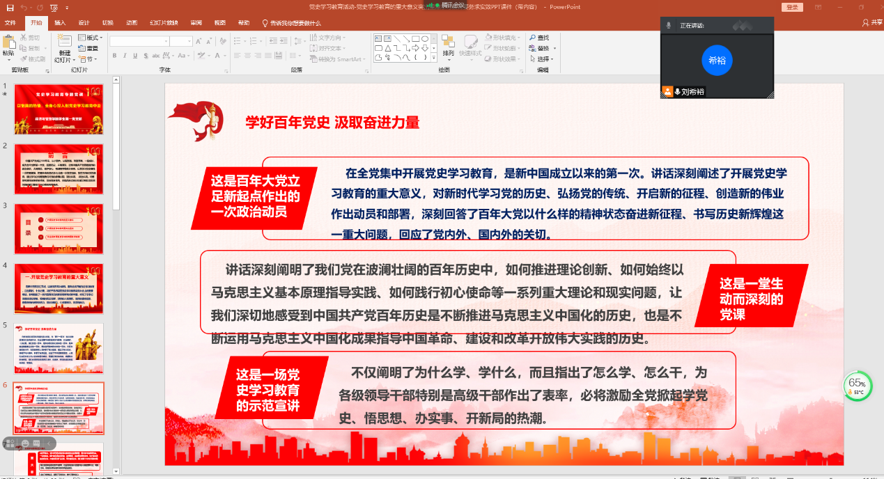2021年3月26日,澳门十大信誉好的网站学生第一党支部书记刘希裕做了题为《以饱满的热情,全身心投入到党史学习教育中去》的专题党课,支部全体党员参加了党课活动。