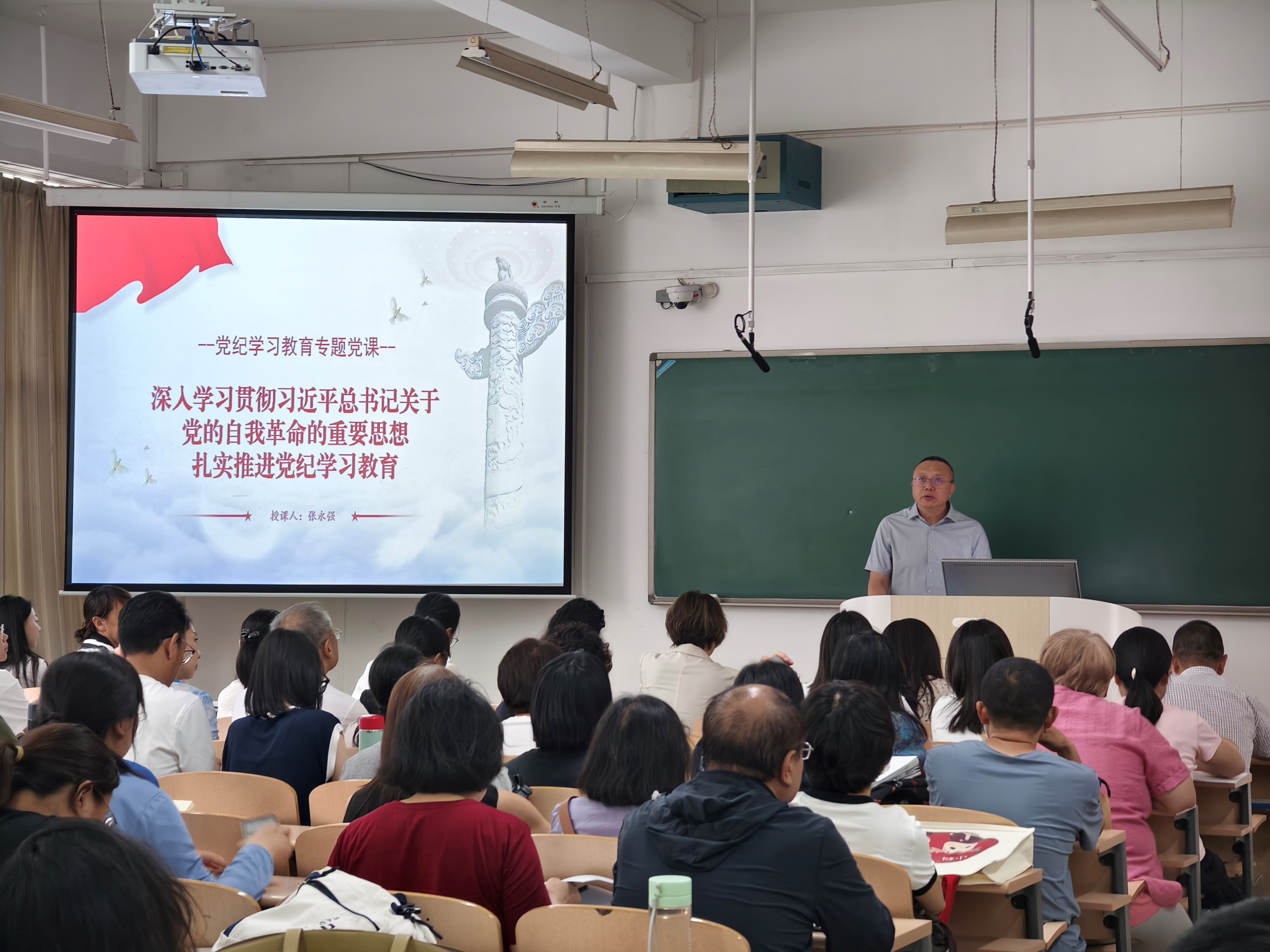6月20日,澳门十大信誉好的网站党委书记张永强在主教E107以《深入学习贯彻习近平总书记关于党的自我革命的重要思想 扎实推进党纪学习教育》为题讲授党纪学习教育专题党课。学院130余名师生党员听取了党课。