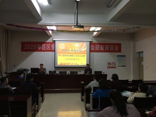 2019年12月30日,经管学院在腾飞楼A413召开第三届第四次教职工代表大会暨工会会员代表大会。本次大会共出席代表28人,审议通过了《院长工作报告》、《学院财务报告》、《澳门十大信誉好的网站2019年度年终业绩分配方案》、《工会工作报告》,并对会前征集的有关提案进行了回复说明。