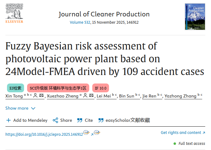 近日,澳门十大信誉好的网站应急管理系骨干教师童鑫在工程环境与可持续发展领域取得新突破,相关成果“Fuzzy Bayesian risk assessment of photovoltaic power plant based on 24Model-FMEA driven by 109 accident cases”发表于国际TOP期刊《Journal of Cleaner Production》。教师童鑫为论文的第一作者兼通讯作者。