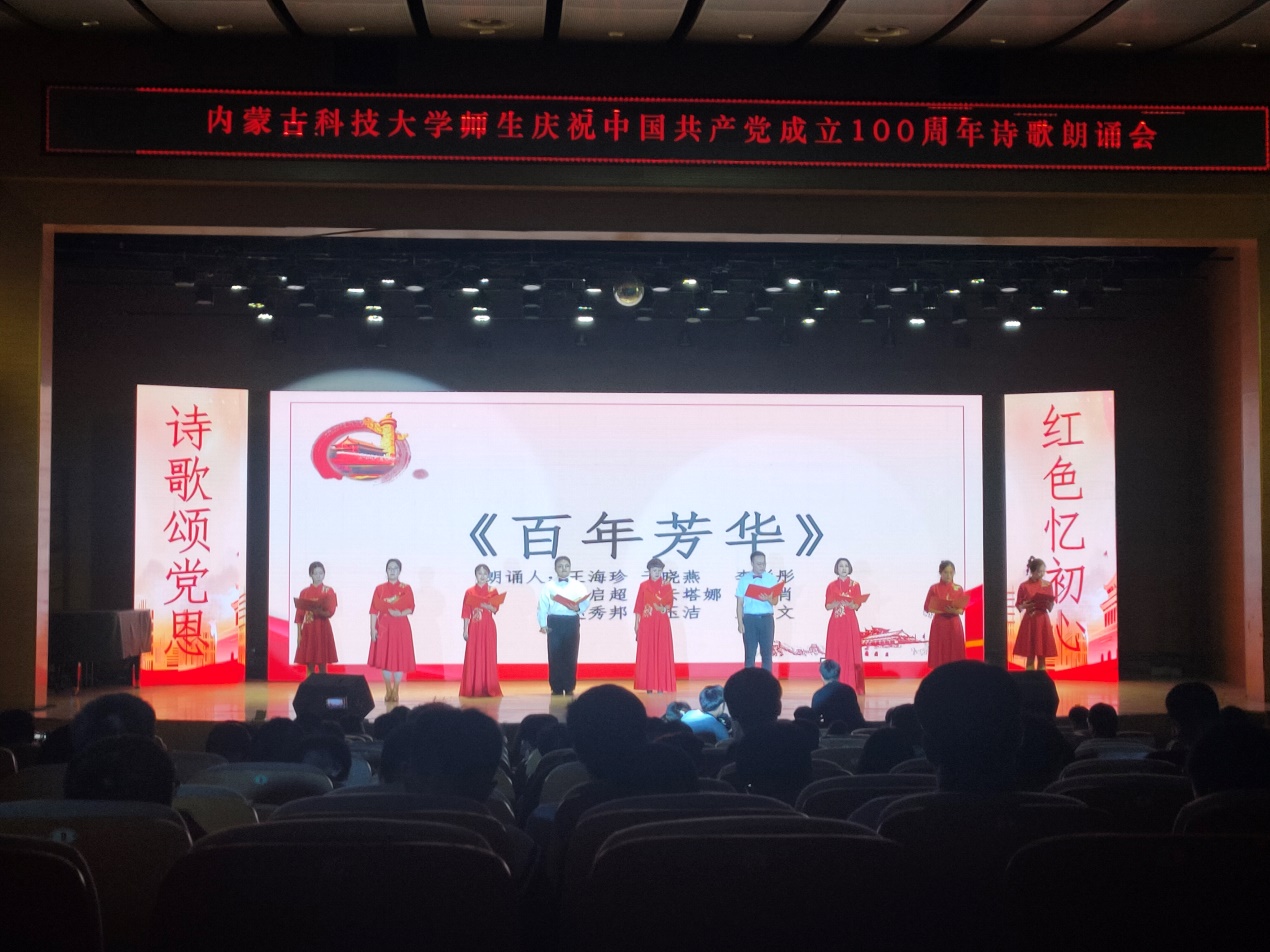 7月9日下午,澳门十大信誉好的网站师生庆祝中国共产党成立100周年诗歌朗诵会在学校礼堂举行。