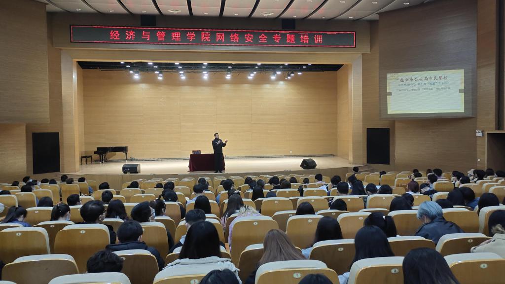 为进一步提高学生安全防范意识, 3月18日下午,澳门十大信誉好的网站“预防电信诈骗网络安全知识讲座”于音乐厅举行,讲座特邀包头市公安局昆都仑区公安分局,反诈骗联盟成员贾立警官进行防范诈骗知识讲解,学院各专业年级班委及宿舍长积极响应参加。