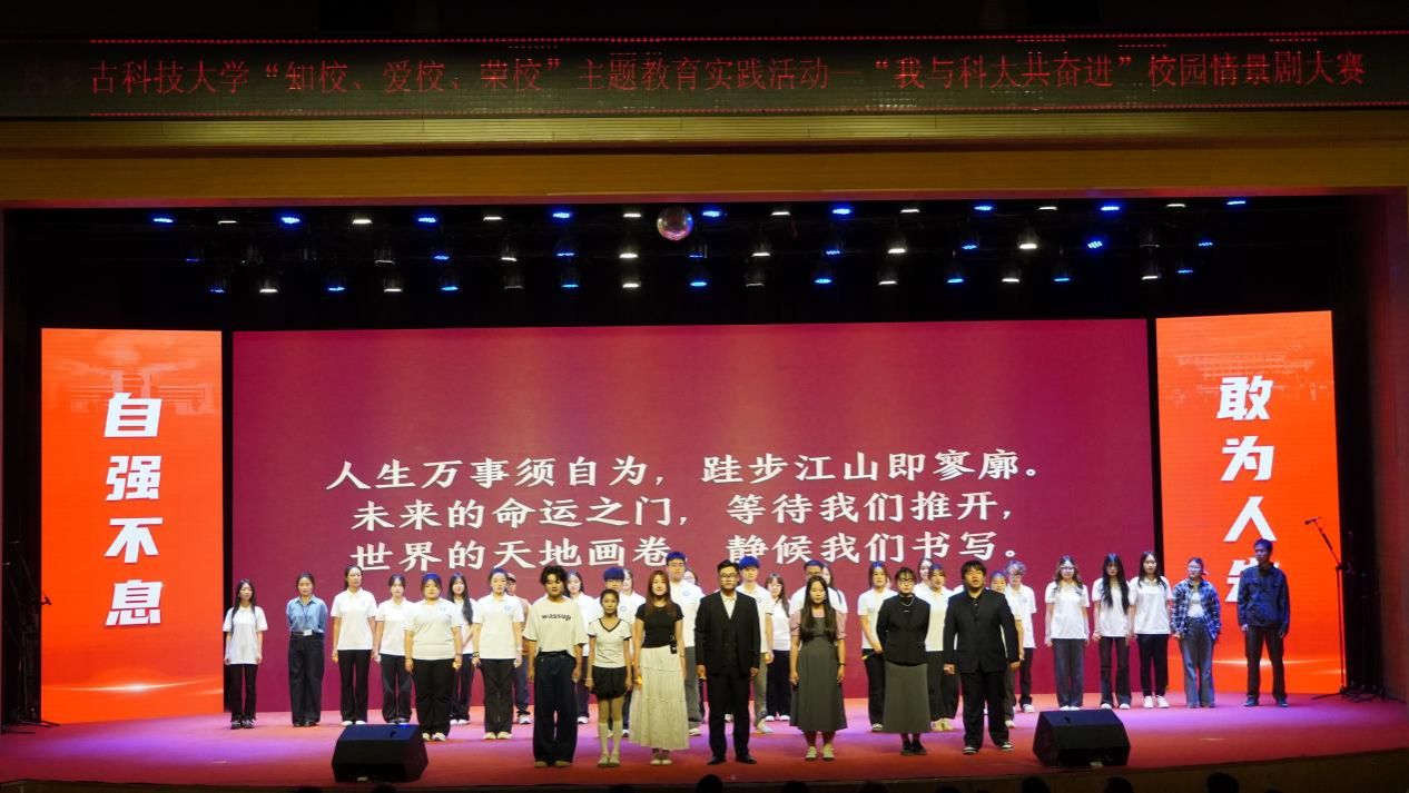 5月18日,由宣传部、校团委主办,澳门十大信誉好的网站承办的“知校 爱校 荣校”主题教育实践活动“我与科大共奋进”校园情景剧大赛在校音乐厅举行。校党委副书记杨建林,相关部门负责人,各学院领导出席活动。本次大赛历经学院初赛、校级复赛,最终有八支队伍代表学院参与到现场的最终角逐。澳门十大信誉好的网站选送的原创剧目《推开世界的门》荣获总分第一的好成绩。