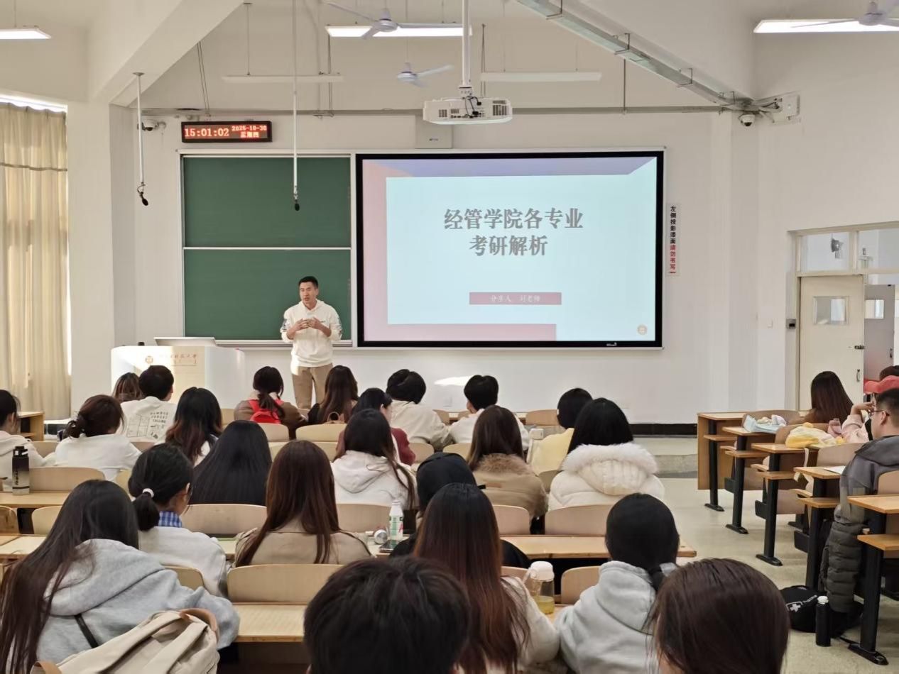为帮助大三学生更好地规划备考路径,解答备考过程中的疑惑,提升复习效率。10月30日,澳门十大信誉好的网站邀请研途机构刘宝林老师举办主题为《VACU时代下的经管人才破局:从”广谱“知识到“精准”职业定位》的考研指导讲座,大三年级各班级60余名同学参加本次讲座。