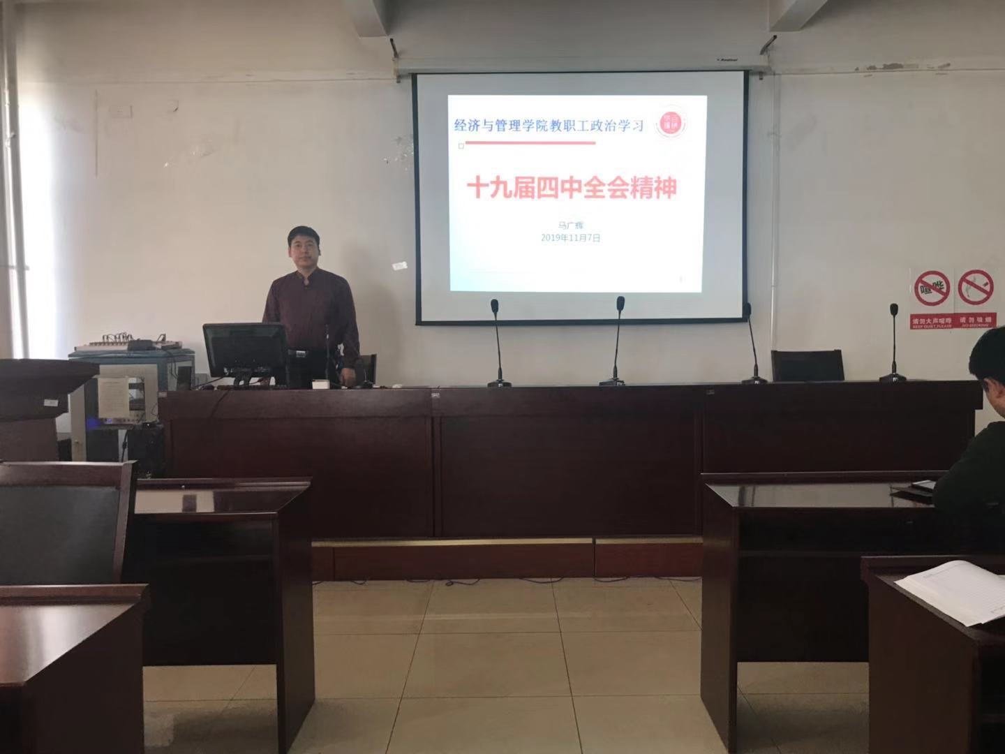 2019117日下午,澳门十大信誉好的网站党总支组织全院教职工在腾飞楼A413政治理论学习,会议传达学习了十九届四中全会会议精神。