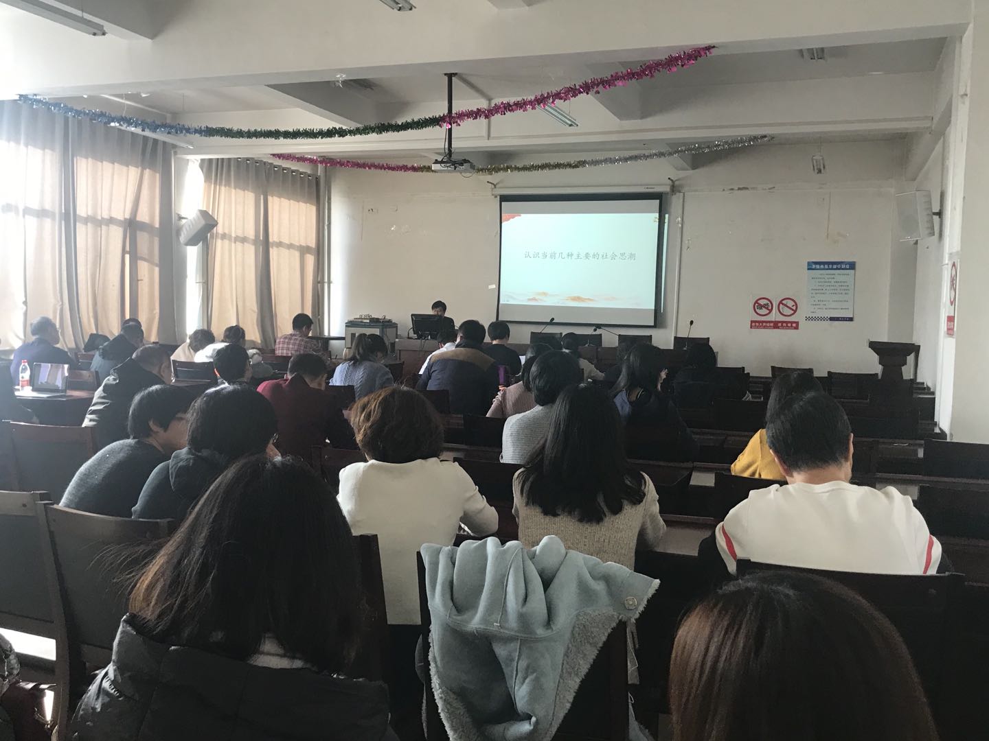 根据党委宣传部(新闻中心)发布的《关于2020年—2021学年秋学期学校新时代讲习团开展集中宣讲的通知》,澳门十大信誉好的网站于2020年12月31日在腾飞楼A413组织习近平新时代中国特色社会主义思想宣讲大会。学院党总支邀请了党委宣讲团成员,文法学院闫金山老师为十大信誉全体教师进行宣讲,宣讲题目是《认识当前几种主要的社会思潮》。