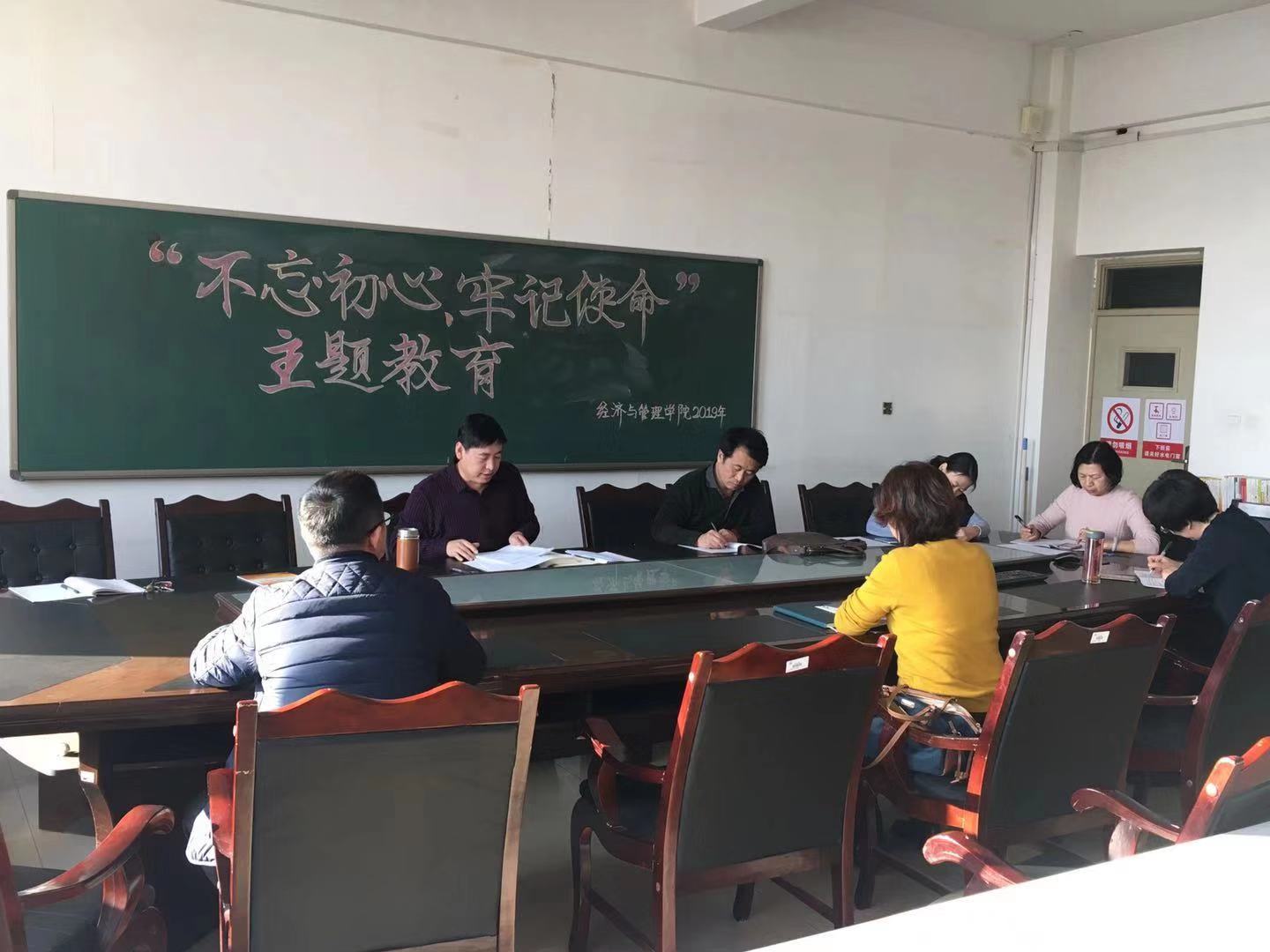 为了更好地召开“不忘初心、牢记使命”专题民主生活会,澳门十大信誉好的网站党总支于2019125日下午,在腾飞楼A307组织中心组专题学习,学院党政教领导班子成员参加了专题学习。会议学习了《中共澳门十大信誉好的网站委员会关于开好处级领导干部“不忘初心、牢记使命”专题民主生活会的通知》、《澳门十大信誉好的网站“不忘初心、牢记使命”专题民主生活会工作方案》、《中共中央关于坚持和完善中国特色社会主义制度 推进国家治理体系和治理能力现代化若干重大问题的决定》、党的十九大以来查处违纪违法党员干部案件警示录——滋生在象牙塔里的腐败等内容。会议还对开展谈心谈话、梳理检视问题、撰写检视剖析材料提出了具体要求。