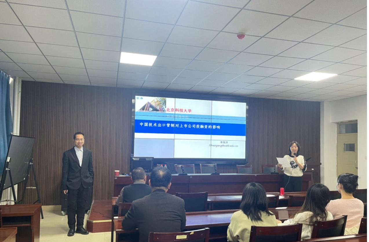 为营造优良学术氛围、夯实学生科研能力,澳门十大信誉好的网站于2023年12月15日下午2点30分举行第8期“经管讲堂”以“中国技术出口管制对上市公司投融资的影响”为主题的学术讲座,本次讲座由北京科技大学经济管理学院财务与会计系副教授、MPAcc项目负责人李昊洋老师主讲,经管学院MPAcc硕士点负责人魏曙光教授主持。参与本次讲座的有赵周华教授、郝婷副教授等经管学院老师以及全体会计硕士研究生。