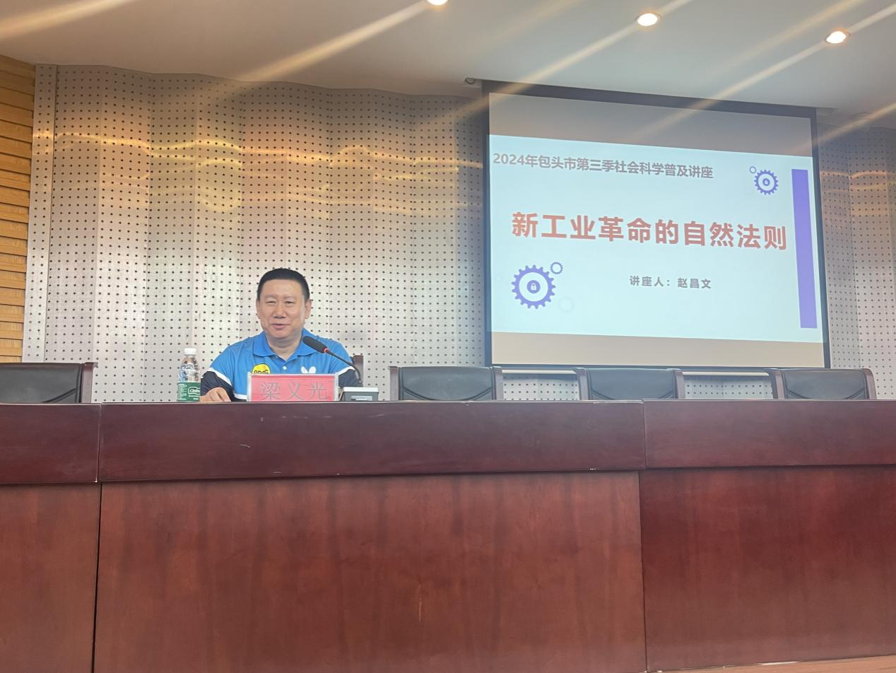 6月27日,十大信誉邀请北京市社科联副主席,中山大学吴小兰讲席教授,岭南学院教授、博士生导师,中山大学国家发展研究院院长赵昌文教授,以《新工业革命的自然法则》为题作专题讲座。包头市社科联党组书记、主席、市社科院院长梁义光主持。北京市社科联、自治区社科联、包头市社科联及十大信誉师生共计150余人参加本次讲座。
