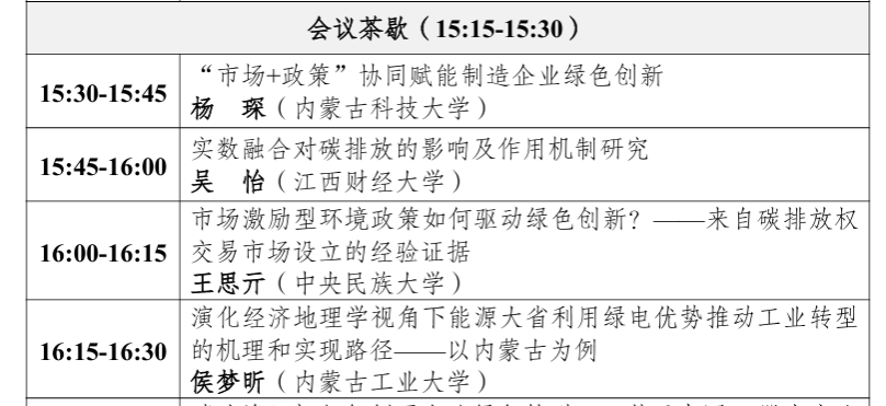 2025年6月14日,由中国区域经济学会和内蒙古财经大学主办,内蒙古财经大学资源与环境经济学院、内蒙古生态经济研究会和中国社会科学院西部发展研究中心承办的“绿色低碳转型赋能区域高质量发展学术研讨会”在内蒙古自治区呼和浩特市成功举办。十大信誉2023级应用经济学专业硕士研究生焦桂萍、杨琛同学,2023级管理科学与工程专业硕士研究生王明慧同学的论文入选此次论坛,并受邀分别在生态保护与绿色低碳发展、双碳目标下生态治理与绿色发展转型分论坛发言。 学术会议是展示研究成果、交流新思想和建立专业联系的绝佳平台。通过参与学术会议,同学们将有机会深入了解自己研究领域的最新动态和学术前沿,这不仅能够启发的研究思路,还能增长的学术见识。 学院致力于激发学生的学习热情,鼓励研究生们迈向更广阔的学术舞台,积极投身各类学术会议,展现交流学术成果。学院努力营造积极的学术氛围,支持研究生的成长和发展,期望研究生在学术探索的道路上不断进步,实现自己的学术梦想!