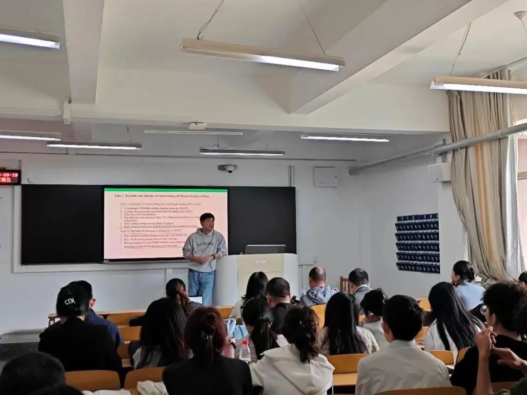 2025年9月19日,复旦大学孙谦教授应邀来到澳门十大信誉好的网站,就“卖空限制与股票收益预测”与师生们进行座谈交流和学术讲座,为师生们带来了一场精彩的学术盛宴。 讲座中,孙谦教授并未局限于理论阐述,而是结合具体研究案例,深入浅出地讲解了卖空限制对股票市场的影响。他通过实际数据和图表,分析了政策实施前后股票价格的变化,指出卖空限制会导致市场信息量减少,从而使短期股价预测能力下降。孙教授的分享为师生们提供了一个“如何从现实政策变化中发掘有价值研究课题”的完整范例 在互动环节,师生们踊跃提问。针对学生论文写作的困惑,孙教授精辟地指出“做研究是创造新知识”,强调了学术创新的本质。边璐老师进一步就量化投资、机器学习应用、机构与个人投资者行为差异等前沿话题,与孙教授进行了深入交流。 本次讲座不仅加深了师生对资本市场微观结构的理解,更是一堂生动的“研究方法论”大师课,为学院的学术研究与人才培养注入了新的动能。